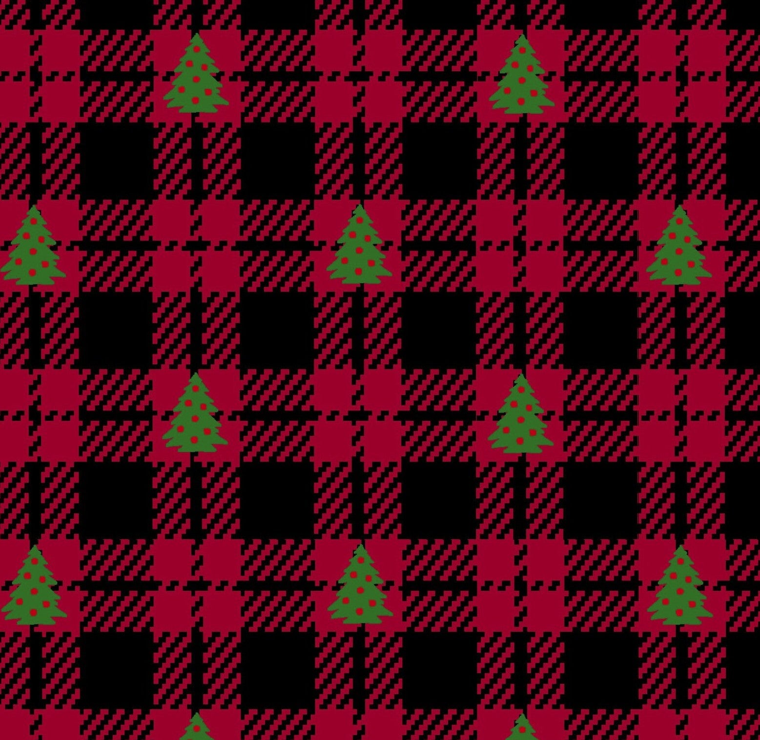 This festive red-and-black buffalo plaid with cute little green Christmas trees is classic, cozy, and perfect for the holidays!